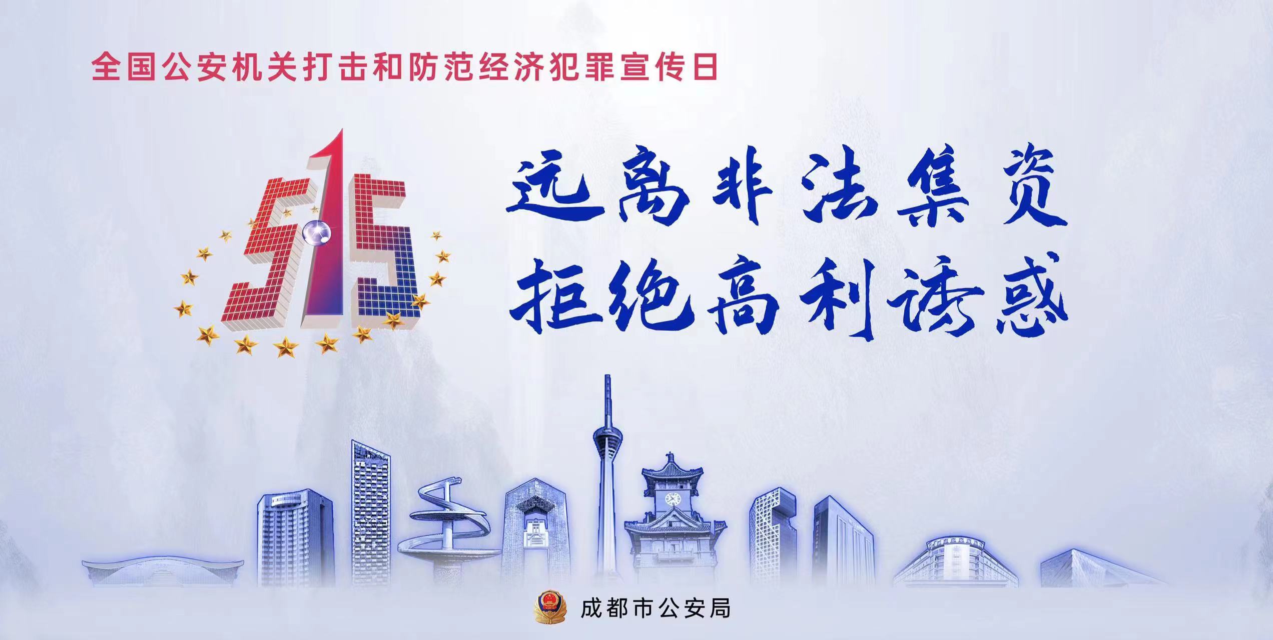 每年5月15日是全国公安机关打击和防范经济犯罪宣传日。按照公安部、公安厅的统一部署,今年5月15日,成都公安经侦将以“与民同心,为您守护”为主题,聚焦侵害人民群众切身利益的非法集资及影响“六稳”“六保”、损害营商环境、影响人民群众幸福感、安全感的突出经济犯罪,开展电台宣传、案例宣传、公益视频等线上宣传活动,详细介绍经济犯罪形势特点、揭露作案手法、传授防范技能,集中展现公安机关忠诚履职、打击犯罪、保障民生、服务发展的坚定决心和显著战果,进一步提高广大人民群众识别、防范经济犯罪的意识、能力。