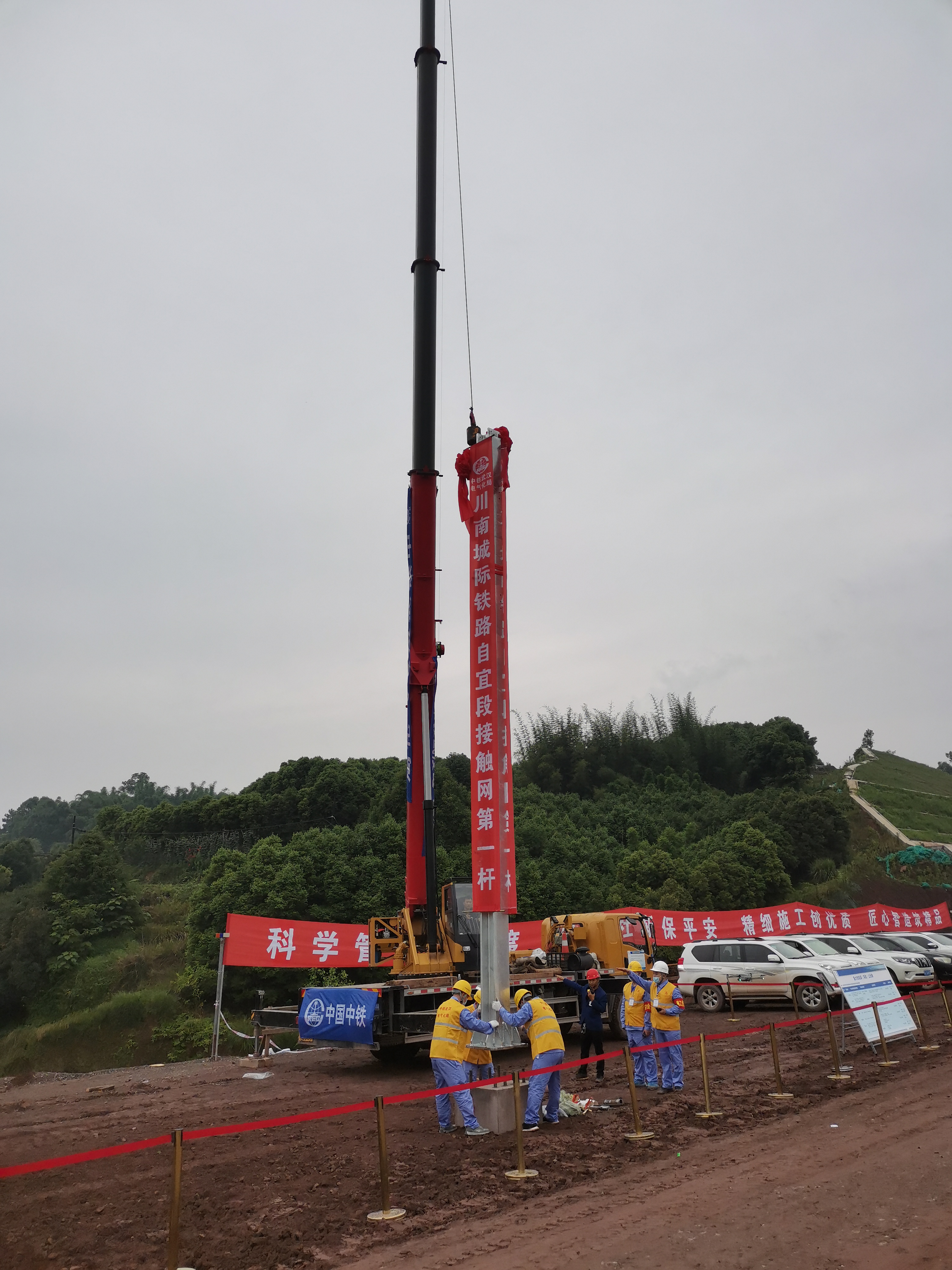 “四电”工程是高铁建设中通信、信号、电力和电力牵引供电工程的总称,是整条高铁的“中枢大脑”和动力之源,也是高铁建设中的最后一道关口,还涉及灾害监测工程、给排水、站场、四电房屋工程等多项专业。其中,接触网属于电力牵引供电工程的重要内容,包括支柱基础、支撑装置、定位装置和悬挂装置四部分。高铁列车就是通过车顶的受电弓获取接触网上的电能为列车提供动力,这也是高铁运行的基础。为了本次接触网第一杆首件定标,成兰铁路有限公司成自宜指挥部加强技术管理,提前筹划,严控作业流程、技术指标、工艺标准,确保首件施工工艺优、施工质量优。
