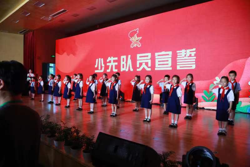 活动最后,举行了“童心向党”新队员入队仪式,现场的新队员在聆听完全国红领巾宣讲员“请党放心 强国有我”红孩子公开课以后,在青年榜样带领下进行了宣誓和呼号,正式成为了一名少先队员,走出了成为好团员、成为好党员的第一步。
