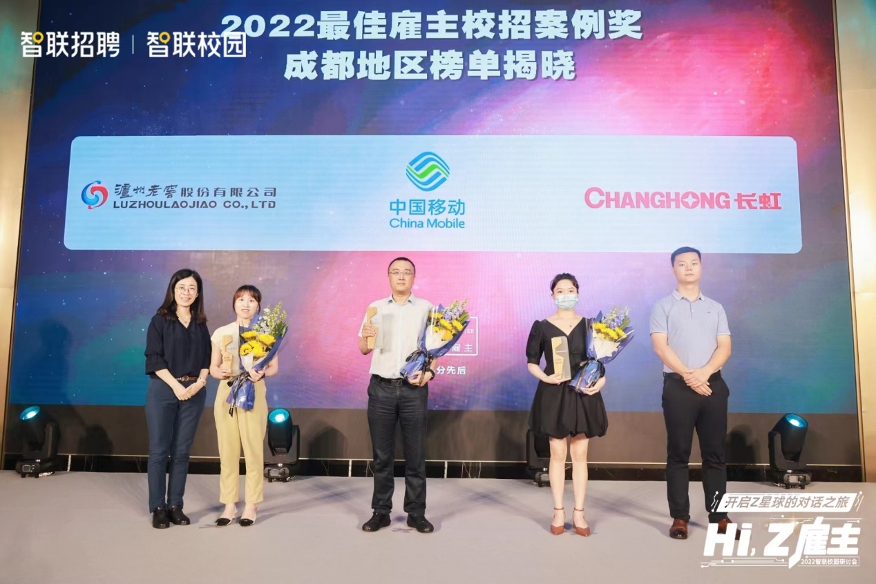此次活动揭晓了获得2022最佳雇主校招案例奖成都地区榜单:泸州老窖股份有限公司、中国移动通信集团四川有限公司、四川长虹电子控股集团有限公司(排名不分先后)。智联招聘通过最佳雇主校招案例奖的评选活动来深刻挖掘“Z世代”雇佣之间的链接关系,给予企业雇佣理念上的新认知,鼓励企业能够包容“Z世代”群体个性,关注他们的体验感,彼此实现双向互动、共同建立企业文化、共享企业发展成果,与“Z世代”求职者实现双向奔赴。