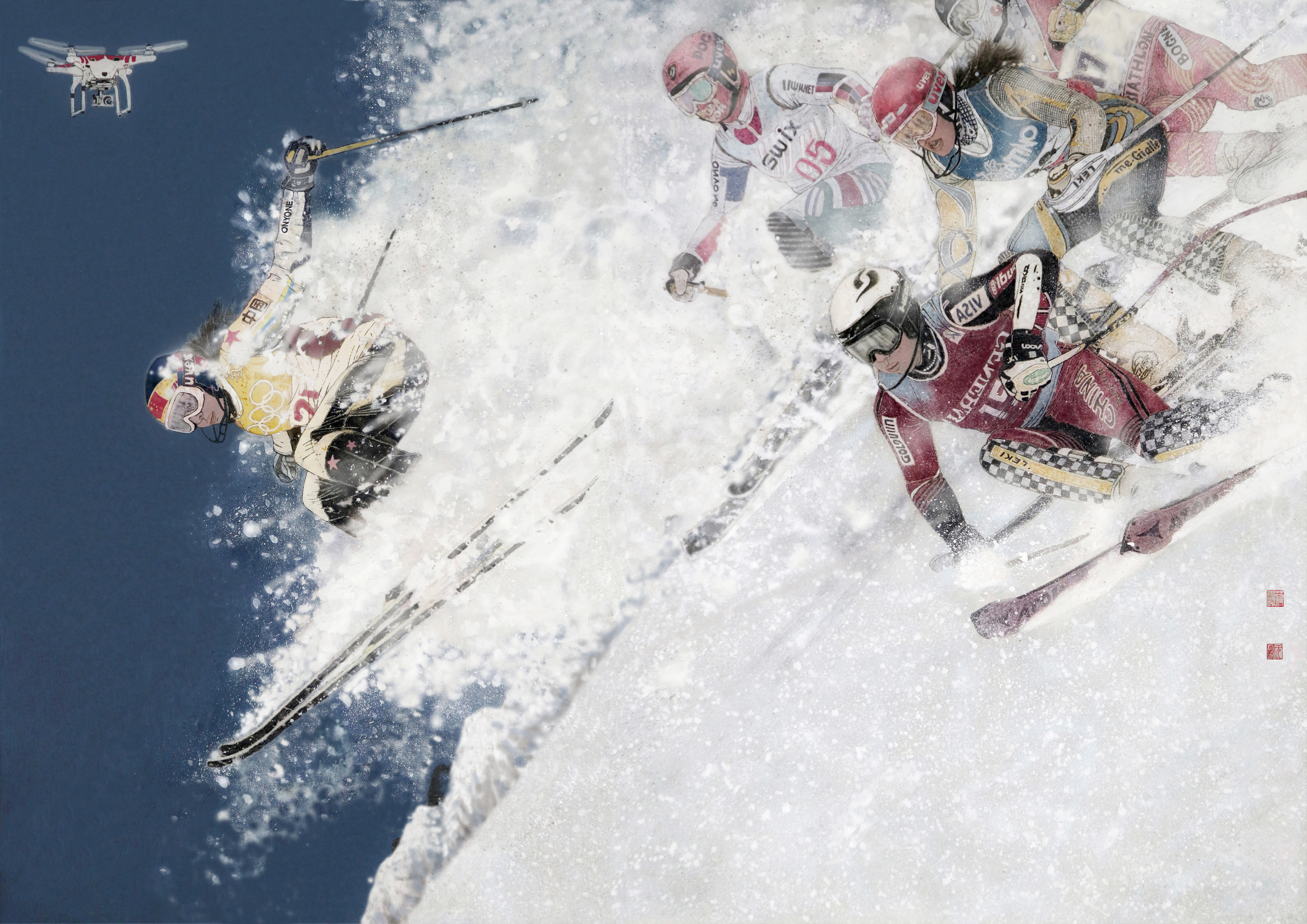 人类正是在进入后现代文明之后遭遇了史无前例的全球蔓延的新冠病毒疫情,自然与科技的角逐也再度把对生命的追问这个人类生存的基本命题提升到了一个新的高度。的确,科技只是增益人类能力的手段,但对每个生命个体来说,运动都是保持其生命状态最基本的方式。从这个意义看,在全球性疫情尚未得到彻底控制的危情下,2022年北京冬季奥运会的举办再度凸显了生命本身的价值与意义。因为,不论人类通过科技文明延伸了多少能力,都只能是以人的生命运动与生理机能为根本,而不是用科技的智能替代人的生命体验与生命价值。而艺术存在的理由则同样体现了生命绽放的光彩,艺术家在作品中进行的审美创造都是人类审美的本能,是生命美感融合于自然并进入主体精神表现的一种生命美学的昭示。