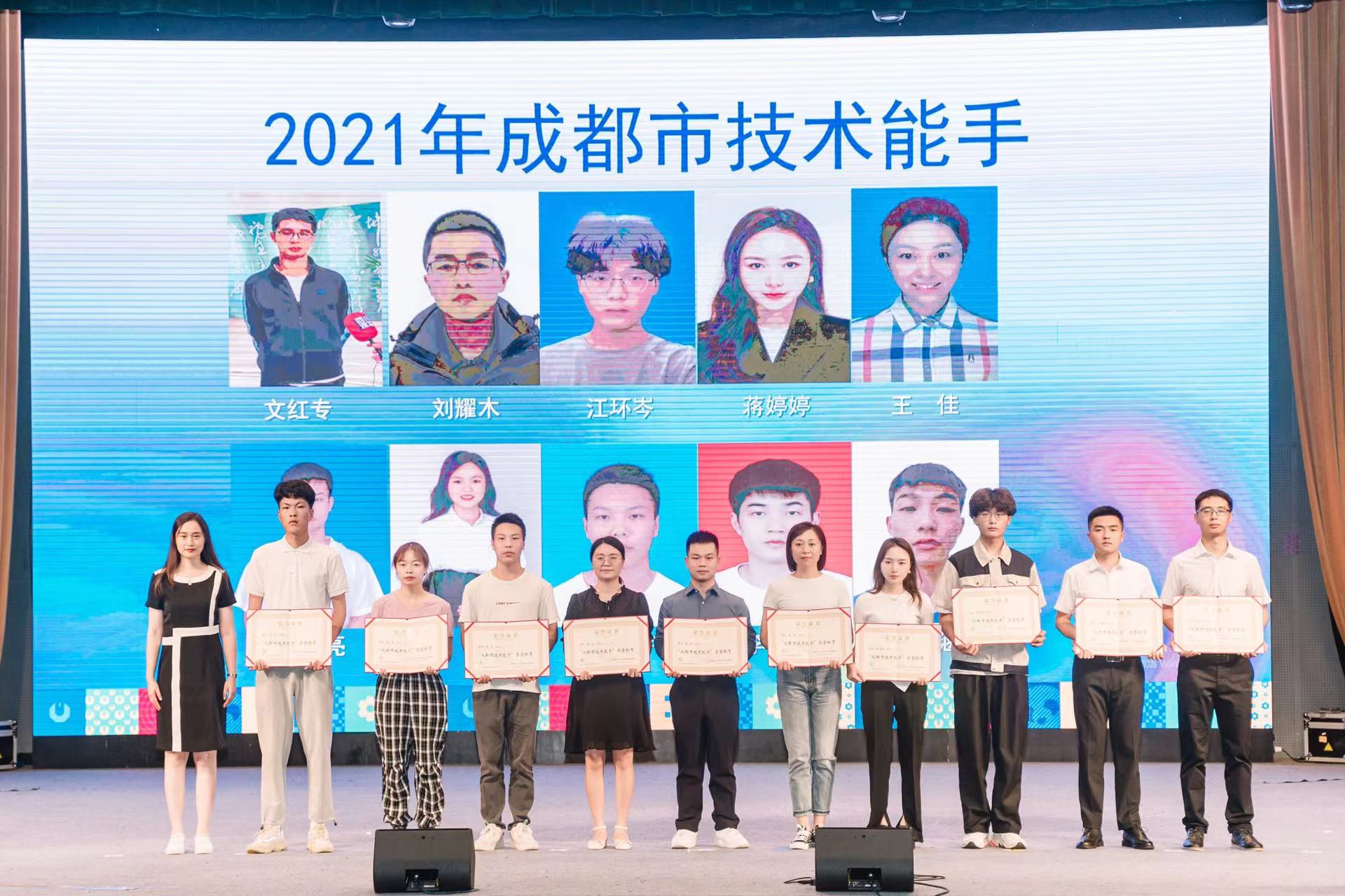 大会还对2021年承担成都市职业技能竞赛集训任务并在4项重大赛事活动中取得优异成绩的10家单位颁发“突出贡献奖”;对圆满完成我市第七届青年技能竞赛承办工作的9家单位颁发“技能大赛优秀组织单位奖”;对23个指导竞赛选手取得优异成绩的教练团队进行通报表扬;对172名在国家、省、市级重大赛事活动中获奖的选手授予“成都市技术能手”称号并颁发荣誉证书;对131名成都市第七届青年技能竞赛获奖选手通报表扬并颁发荣誉证书。