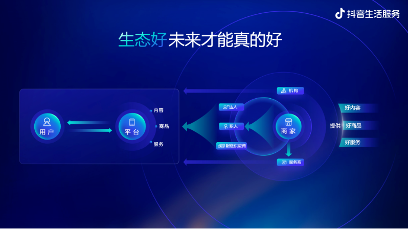 所以,过去一段时间,我们一直在思考平台如何和各个生态角色共存。我想和大家分享的是:抖音生活服务是一个开放的生态,我们非常欢迎大家积极参与。平台会建立公平公正的规则,建立合作的秩序,让有能力的伙伴能脱颖而出。同时,我们也会设置一些底线规则,对于破坏生态的行为,也会毫不犹豫地予以打击。