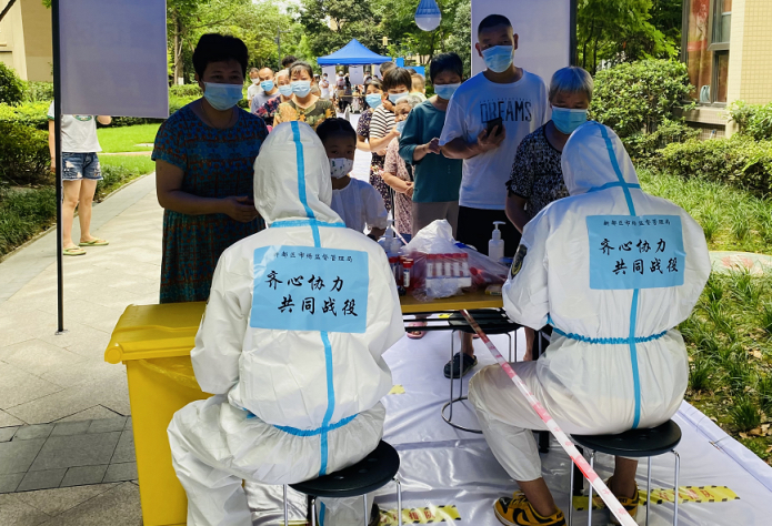 7月17日以来,区市场监管局接连派出两支党员志愿服务队,共计72人次,对口支援大丰街道三元、铁路和双林等社区,协助开展核酸检测工作。
