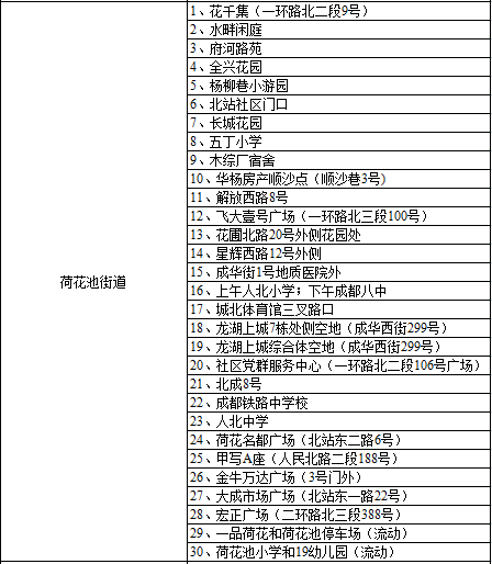 荷花池街道全员核酸采样点位信息
