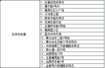 五块石街道全员核酸采样点位信息