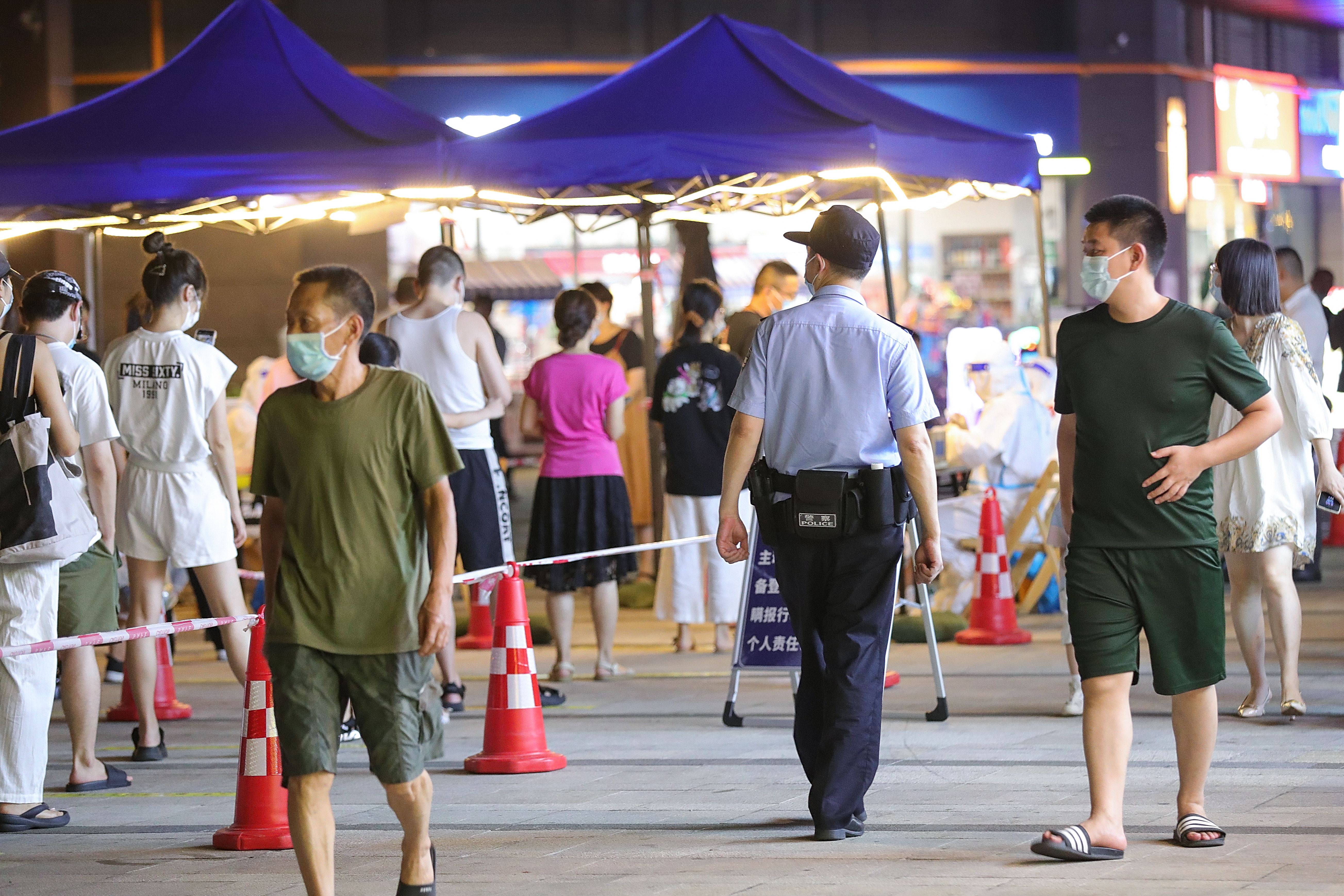 7月24日,在府青路辖区开展车巡的巡警大队民警叶宇说:“作为党员民警,我要在大事难事前主动担当,在艰难险阻中勇往直前。一线工作人员,不论是医务工作者、派出所民辅警,还是街道社区工作人员、志愿者都很辛苦,我将继续与他们并肩战斗,为打赢这防疫攻坚战贡献自己的力量。”