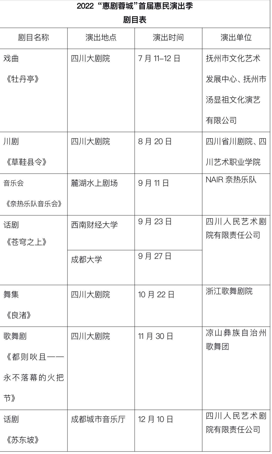文化传承着历史,牵系着未来,文化消费对经济、政治、社会以及个人发展的影响越来越大。特别是在后疫情时代,大力开展基层文化惠民活动,对于提升基层群众的乐观精神、发展信心有着重要的时代意义。首届“惠剧蓉城”演出季,围绕“文化惠民”主题,展演一批经典剧目和当代优秀舞台艺术作品,营造全省浓厚热烈艺术氛围,为实现四川文化强省旅游强省目标建设凝聚精神力量,为“建设践行新发展理念的公园城市示范区”战略目标,全面开启公园城市文化惠民建设提供内生力量。