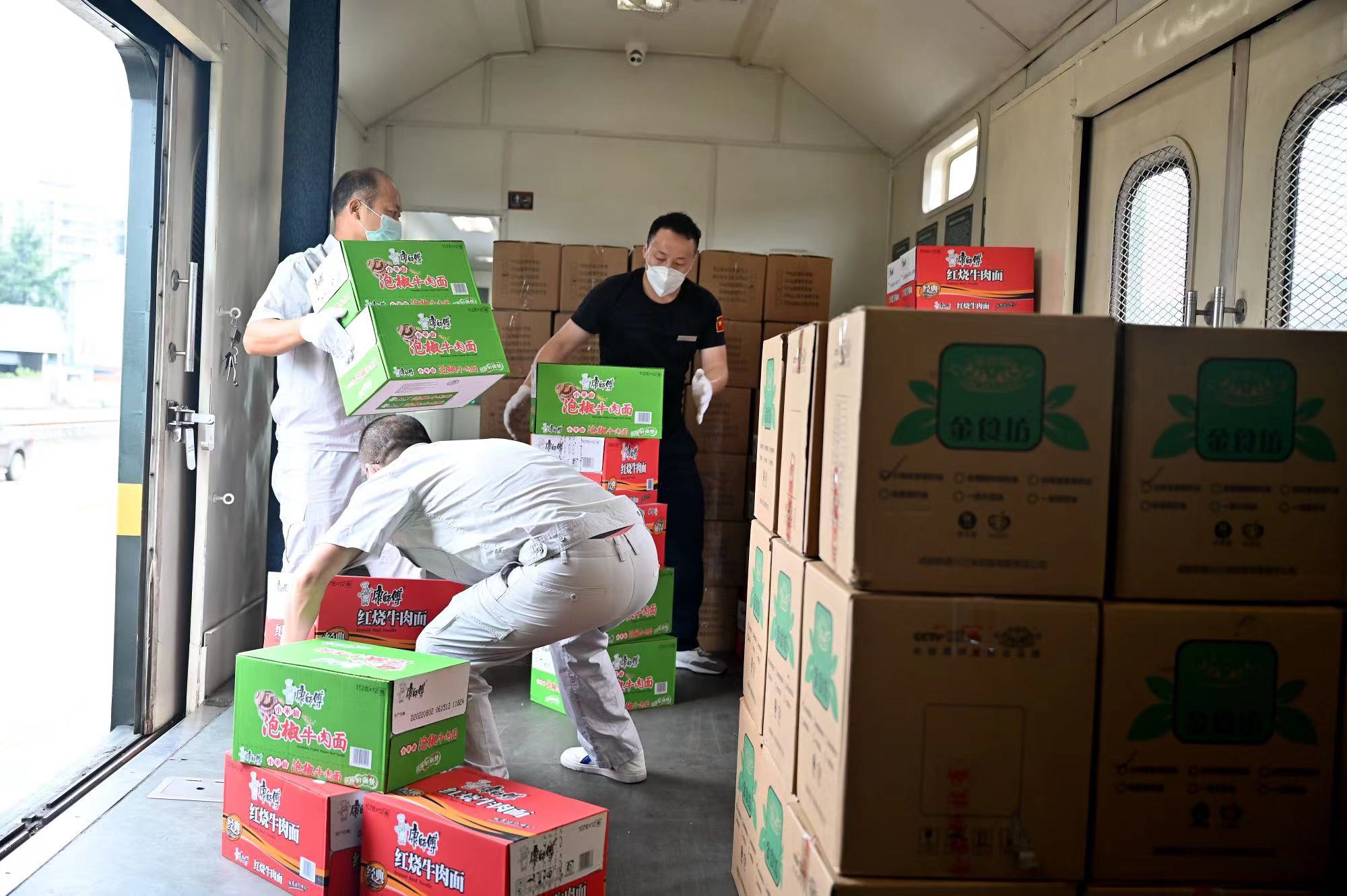 9月2日4时许,随着一声汽笛声响起,载有11车680余吨大米、面粉、白砂糖等物资的47531次列车缓缓驶出成都北车站,驶往龙潭寺站,该批物资将在最短时间从龙潭寺站货场卸下,转运至成都周边各大超市、农贸市场,为支援成都抗疫提供物资供应保障。
