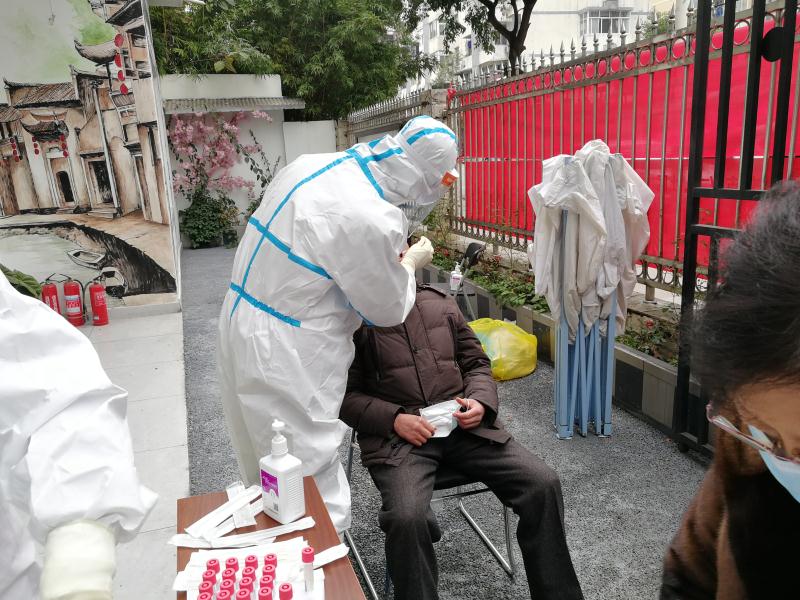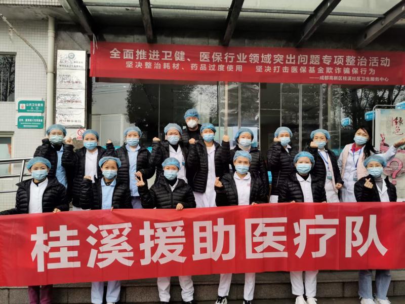 12月8日上午9时,接成都高新区教文卫健局卫生健康处紧急通知,成都高新区桂溪社区卫生服务中心党支部即刻部署,组织科室调配人员,克服人员紧缺困难,分别于12月8日、9日、10日、11日连续派出5支采样队(包括永安、南新社区卫生服务中心等医疗机构)共计87人组成“桂溪援助医疗队”,驰援郫都区开展大规模核酸检测采样工作。截至目前,中心采样队加班加点完成了12189余人的采样任务。