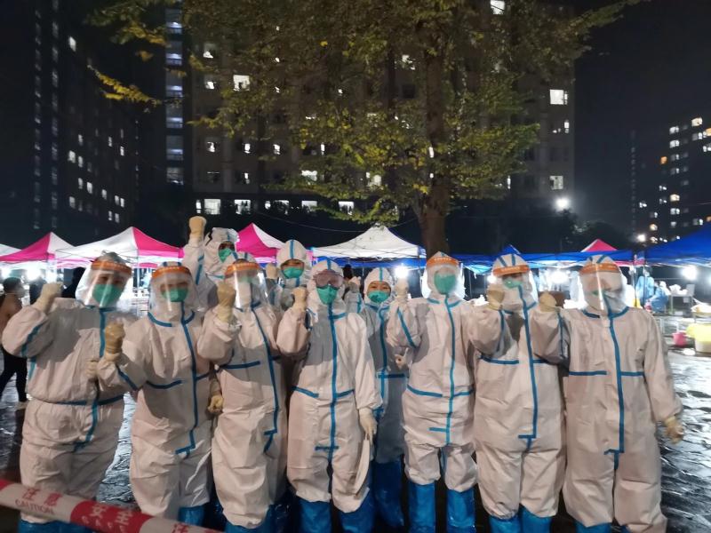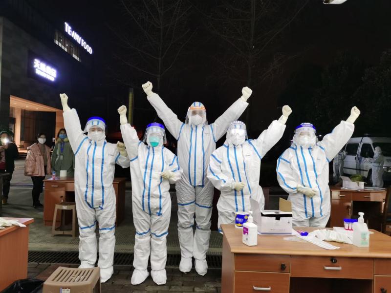 郫都区采样任务重、人次多,条件艰苦,工作时间长,每天都需要通宵在冬季凛冽的寒风中进行采样,医务工作人员为了节约时间减少去洗手间次数和防护服,都穿上成人纸尿裤,几乎不喝水,每一餐饭都简单应付后便迅速投入到采样工作中。医务人员紧缺,一线任务繁重,很多工作人员连续奋战在一线三天三夜了,为了不耽误采样进度,换班的时候就在车上小憩一下,又继续精神饱满地投入到这场没有硝烟的战斗中,他们用自己的平凡之躯为身后的千万四川人民筑起了坚固堡垒。