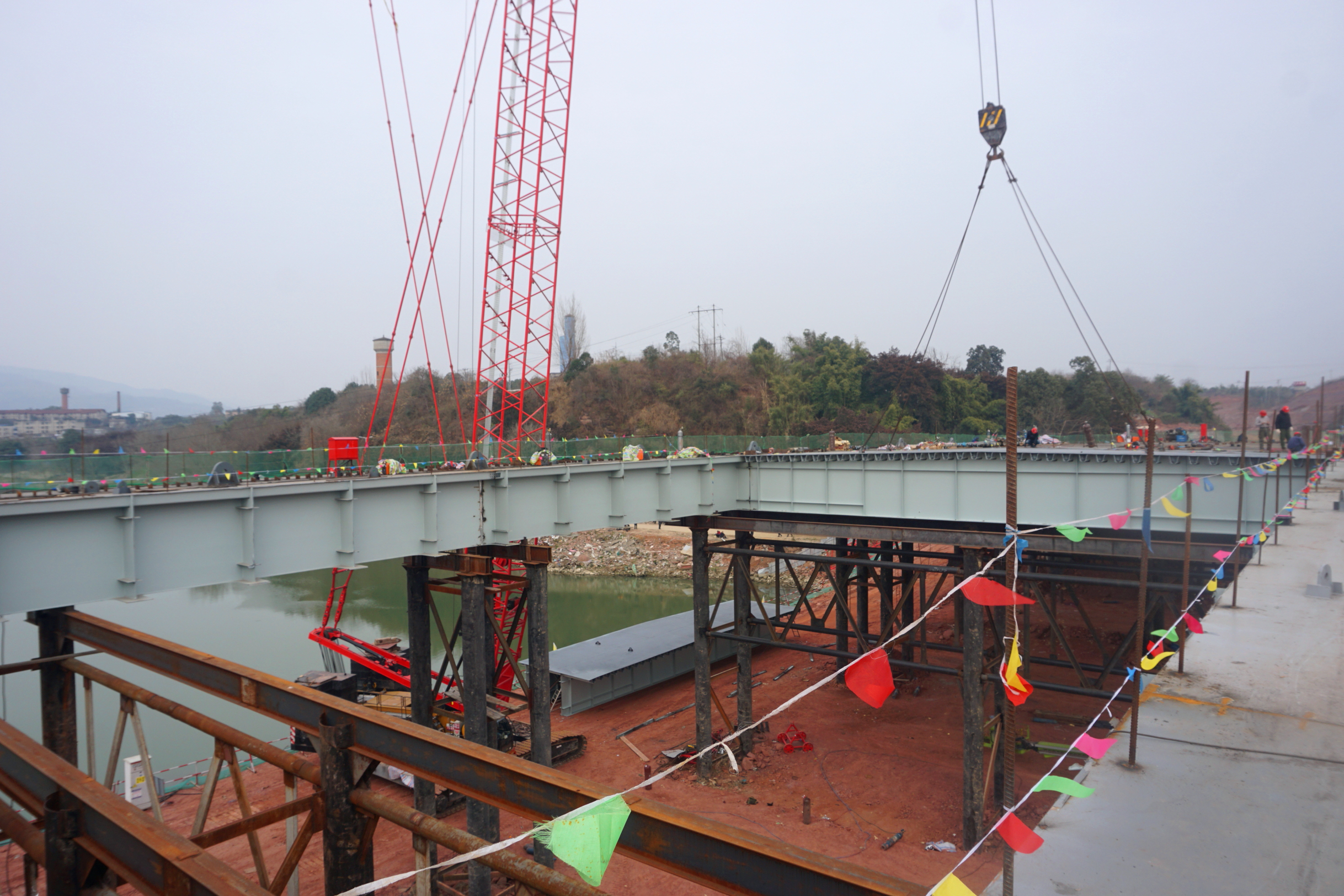 进度条更新!成都金堂淮州湾大桥主桥梁段吊装完成70%
