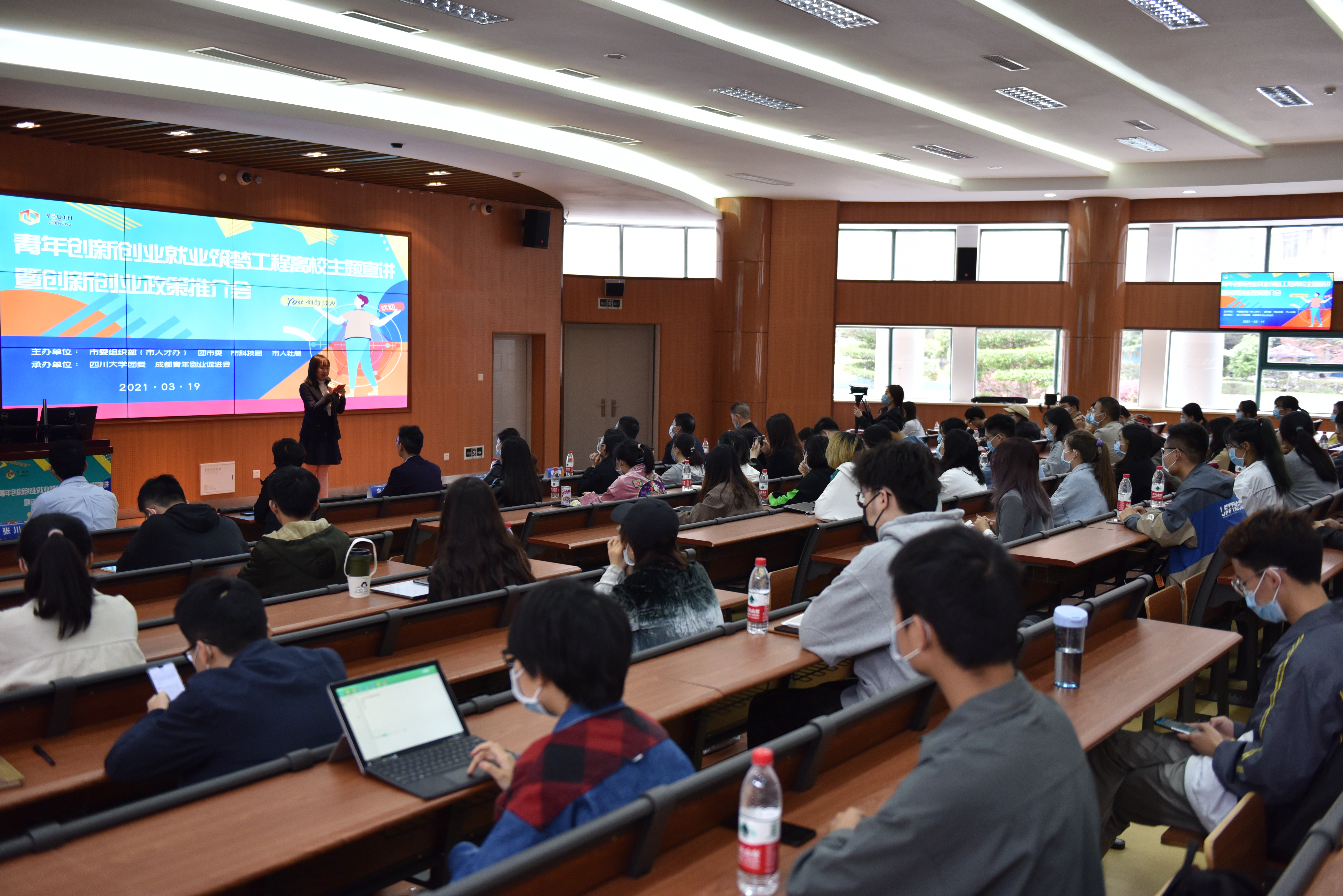 为进一步推动实施青年创新创业就业筑梦工程,广泛推介成都青年创新创业就业环境,3月19日,成都市委组织部(市人才办)、团市委、市科技局、市人社局、四川大学团委联合举办了“青年创新创业就业筑梦工程高校主题宣讲暨创新创业政策推介会”,推介青年在蓉创新创业孵化载体、金融投资、培训课程等服务内容,营造鼓励支持青年大学生在蓉创新创业创造浓厚氛围。