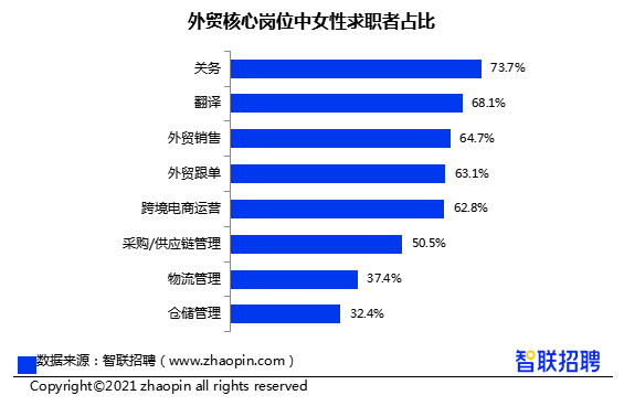 外贸行业求职者女性更多,关务岗位女性占比超7成