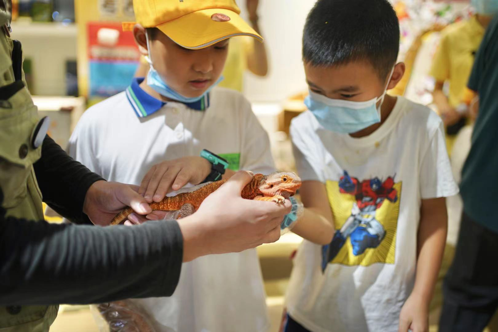 随后,一行人员来到成都拾野自然博物馆。拾野自然博物馆以"城市中心+野生自然+互动体验"的全新模式,开启了中国自然博物馆入驻MALL的先河。博物馆藏有国内最大亚洲象标本,同时还有巴塔哥尼亚豚鼠、孟加拉豹猫、白耳狨、二趾树懒等珍稀动物,孩子们在讲解老师的指导下,与蛇、蜥蜴等动物"亲密接触",并亲手制作了蝴蝶标本。