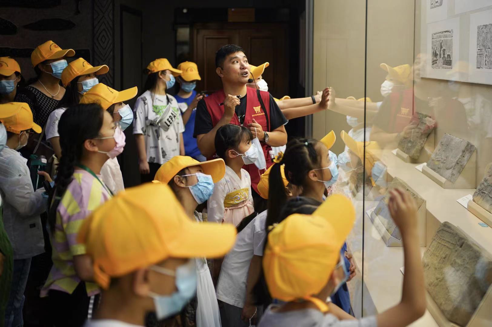 四川博物院藏品包含书画、陶瓷、青铜器、民族文物、工艺美术、藏传佛教、万佛寺石刻、张大千书画、汉代陶石艺术等,孩子们在讲解员的讲述中领略了珍贵展品的风采及其背后的故事。