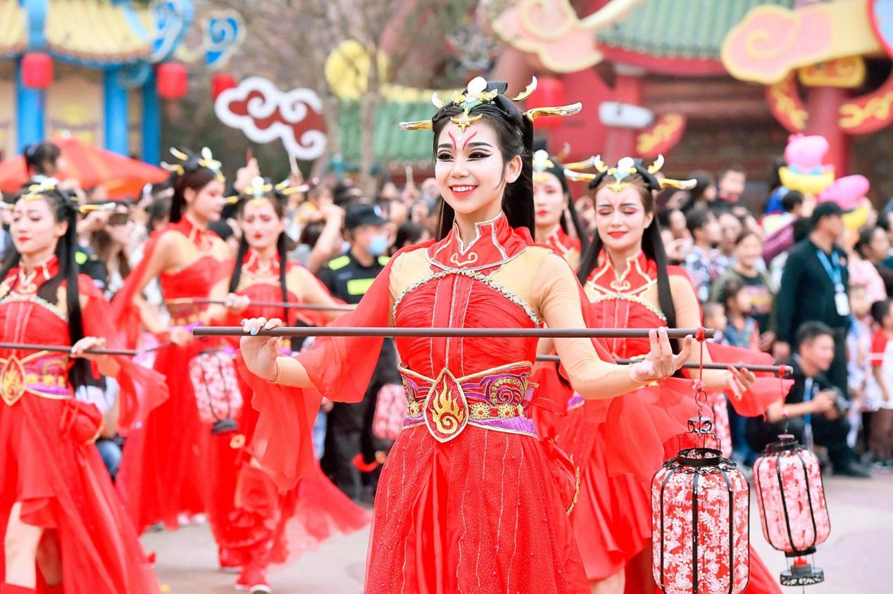 演艺中最具代表性当属“巨马巡游”,震撼的大型机械巨马,声势浩大、缤纷夺目的大型花车巡游,科技感十足,又极具传统文化特色,和家人一起穿越古今,体验一场全沉浸式的视觉盛宴。据了解,该巡游表演不仅融合了中国传统杂技和风情舞蹈,还加了特效表演等多种元素于一体,以英雄庆祝凯旋归来的情节演艺荡气回肠的蜀汉文化。
