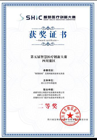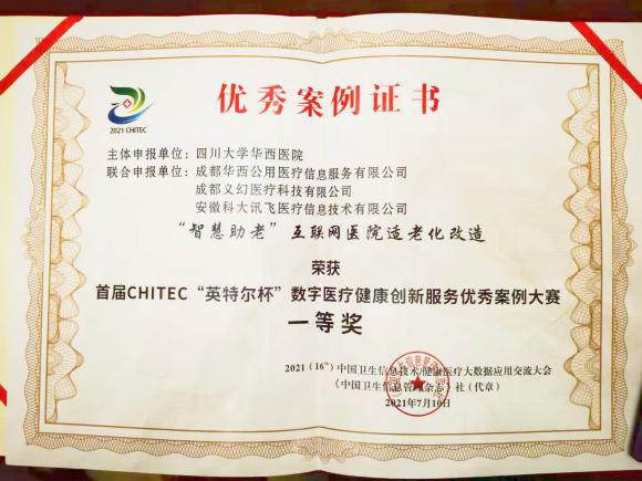 2021年7月,《“智慧助老”互联网医院适老化改》造项目荣获2021年首届“英特尔杯”数字医疗健康创新服务优秀案例大赛一等奖,8月荣获“第五届智慧医疗创新大赛”四川赛区二等奖,智慧门诊中的“适老化创新性探索改造”在业内获得极高评价。