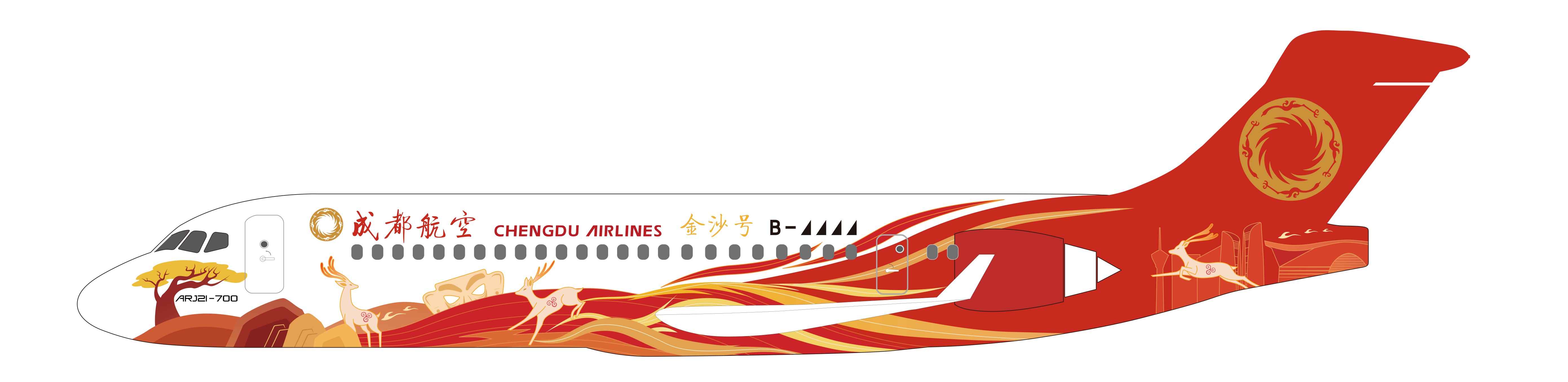 “金沙号”涂装获选方案——“麋鹿逐金轮蓉城溯金沙”/图据成都航空