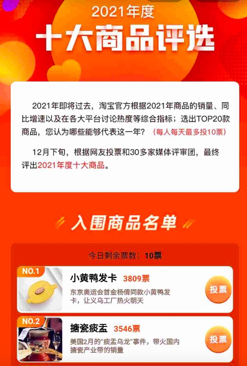 哪些商品陪你度过2021?淘宝启动“十大年度商品” 评选