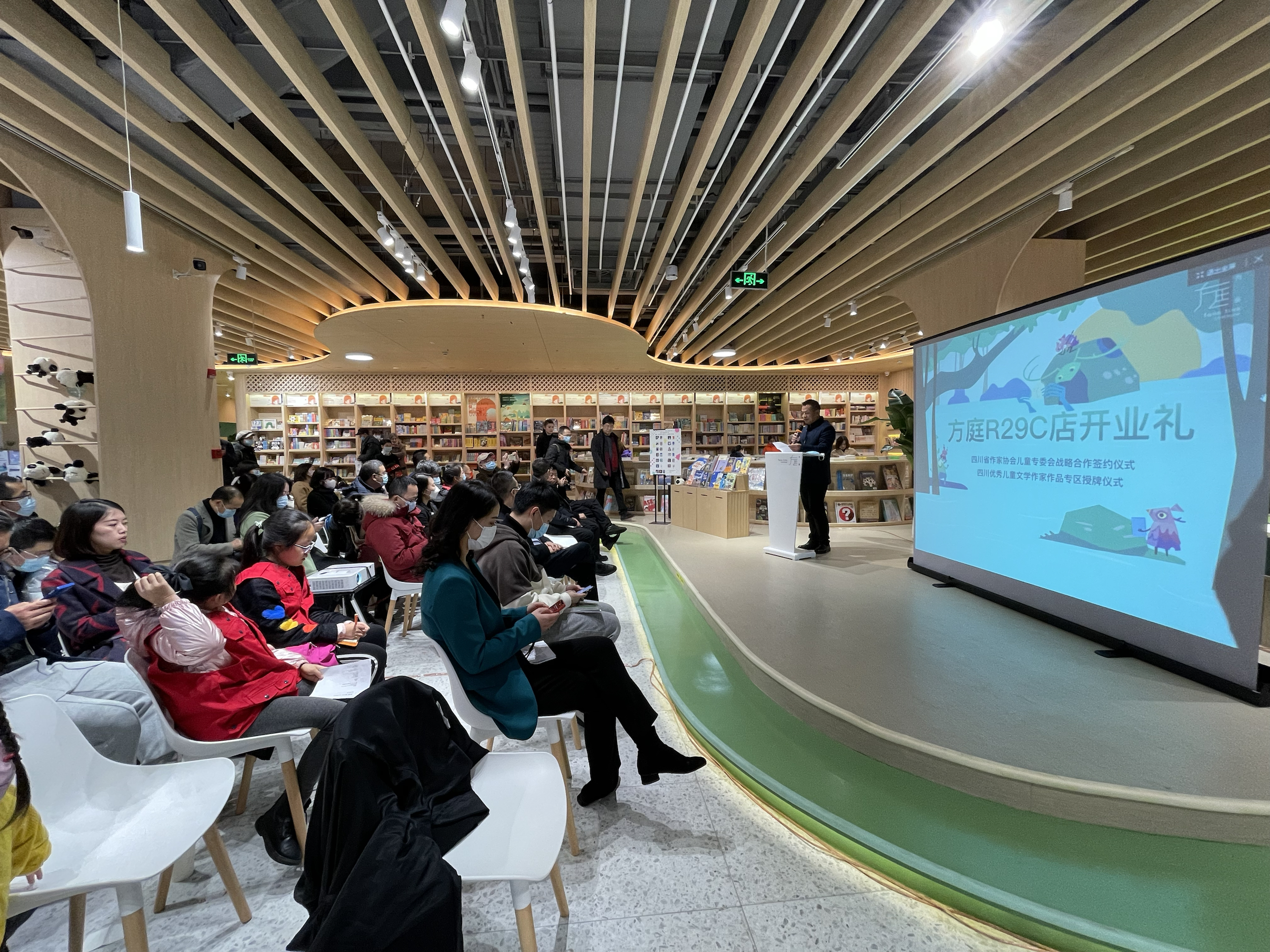 2022年1月22日,继方庭欢乐里音乐主题店后,方庭亲子主题书店R29C店正式落户兴城人居R29C。与此同时,方庭R29C店的四川优秀儿童文学作家作品展示专区正式开启。