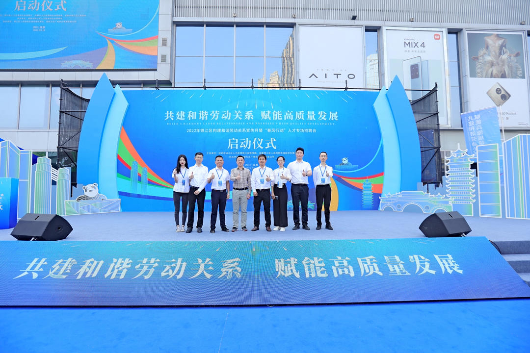 3月18日,四川省2022年度和谐劳动关系“春风行动”暨成都市第五届构建和谐劳动关系宣传月活动在锦江区举行。宣传月活动以“共建和谐劳动关系·赋能高质量发展”为主题,旨在全面贯彻落实党中央国务院、省委省政府和市委市政府关于构建和谐劳动关系的决策部署,坚持稳中求进、高质量发展工作主基调,围绕“建设践行新发展理念的公园城市示范区”总目标,统筹促进企业健康发展和维护职工合法权益,增进民生福祉。