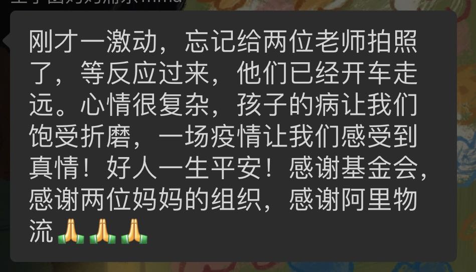 “一个宝宝已经出现症状,等不了那么久了,最晚要在两天内送达。”但如何送达,病友服务团队有点无助,只好发动能发动的朋友寻找配送资源。