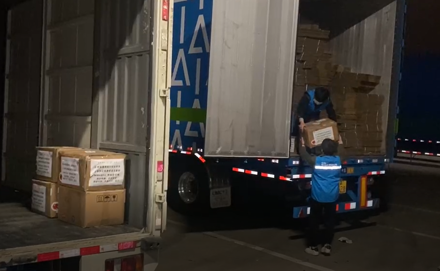 4月18日凌晨1点,从南京仓开过来的物流车抵达菜鸟嘉定仓,仓内工作人员连夜将10件奶粉装上配送车辆,以便第二天第一时间配送给患儿家庭。