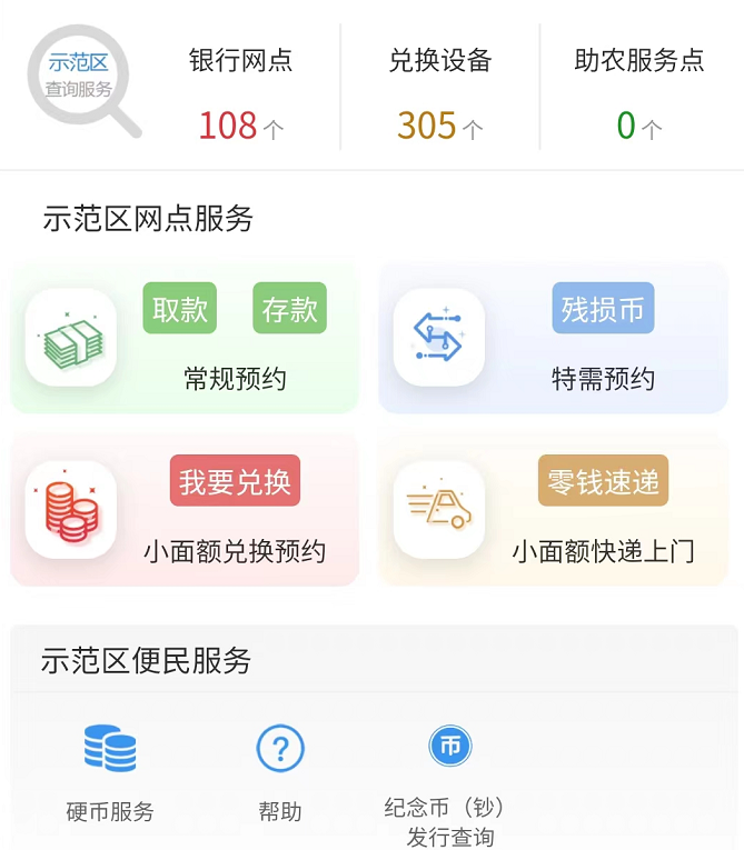 “比如对于一对新婚夫妇来说,购买新房需要打印征信报告,婚礼上需要兑换小面额红包,家庭资金可用于购买国债理财……而这所有的金融服务需求都可以在一个服务专区里得到满足,让金融服务从‘面对面’到‘键对键’,让‘反复跑’到‘只跑一次’或’一步都不跑’,提升了金融服务的质效。”人行成都分行营业管理部相关项目负责人介绍到。