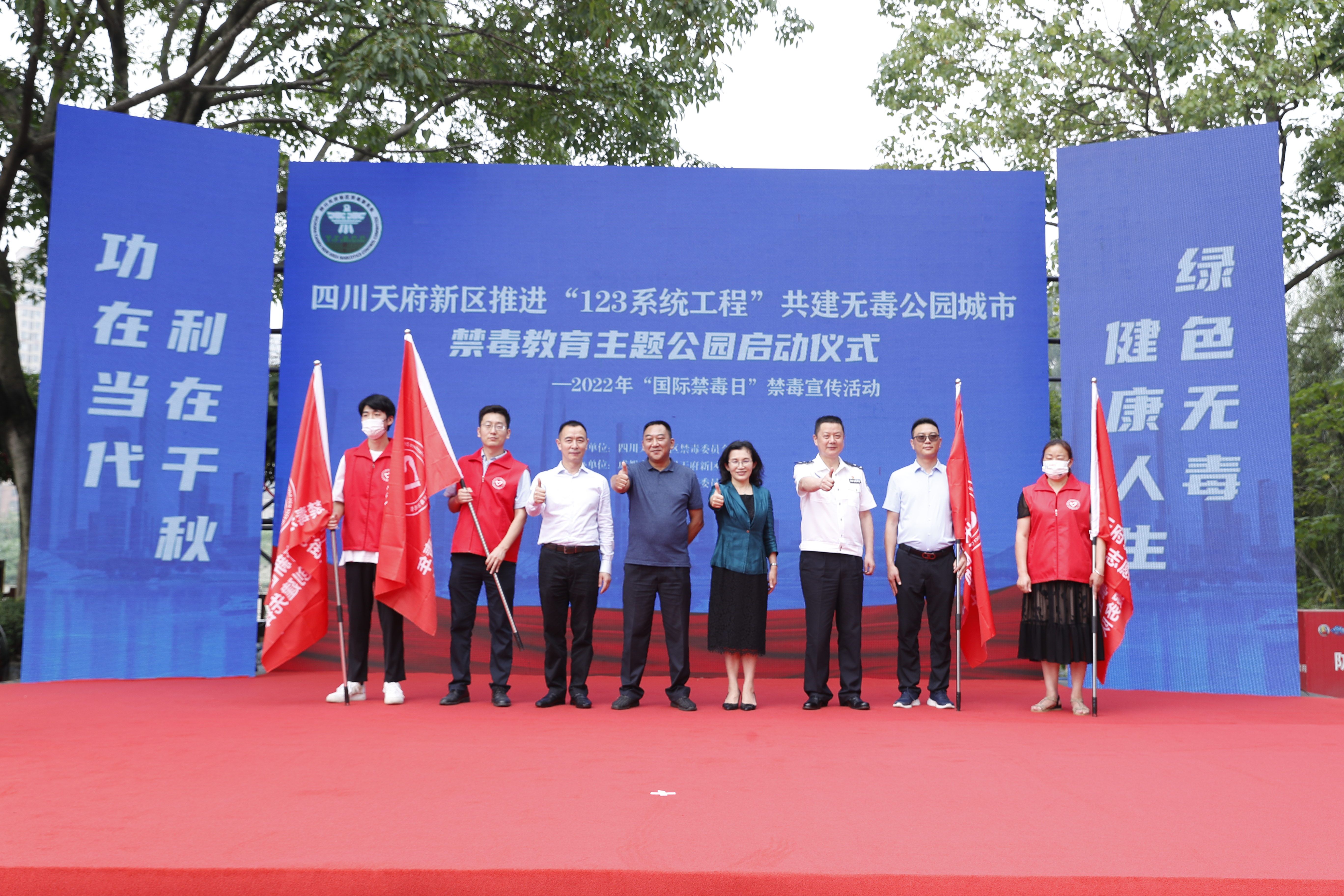 近日上午,由四川天府新区禁毒委员会主办,成都市公安局天府新区分局、四川天府新区禁毒委员会办公室承办的“四川天府新区推进123系统工程共建无毒公园城市暨禁毒教育主题公园启动仪式”在华阳南湖公园梦幻岛顺利举行。