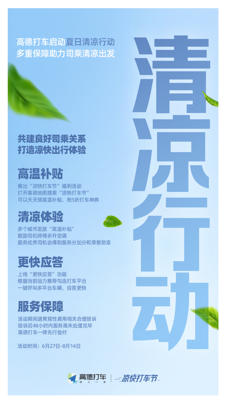 6月27日,看度记者了解到,高德打车联合合作出租车及网约车平台启动“清凉行动”,旨在与司机、乘客一起,共建良好的司乘关系,打造清凉的乘车体验。