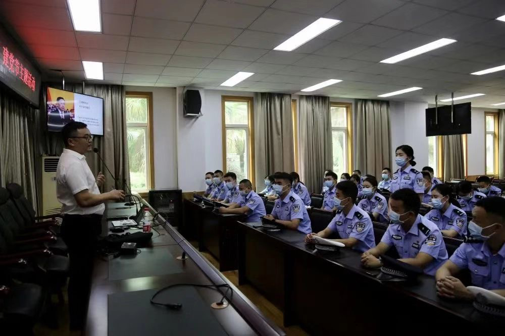 一首警歌入梦想。升旗仪式结束后,全体党员民警代表齐声高唱《人民警察之歌》,嘹亮的歌声彰显出分局民警永远跟党走的信念和决心;铿锵的歌词展现出老中青三代公安民警不懈奋斗,维护社会公平正义的历程足迹;澎湃的旋律,激励着警营儿女忘我工作,争优创先,用踏实的工作,务实的作风回应党和人民对新时代公安工作的新期盼。