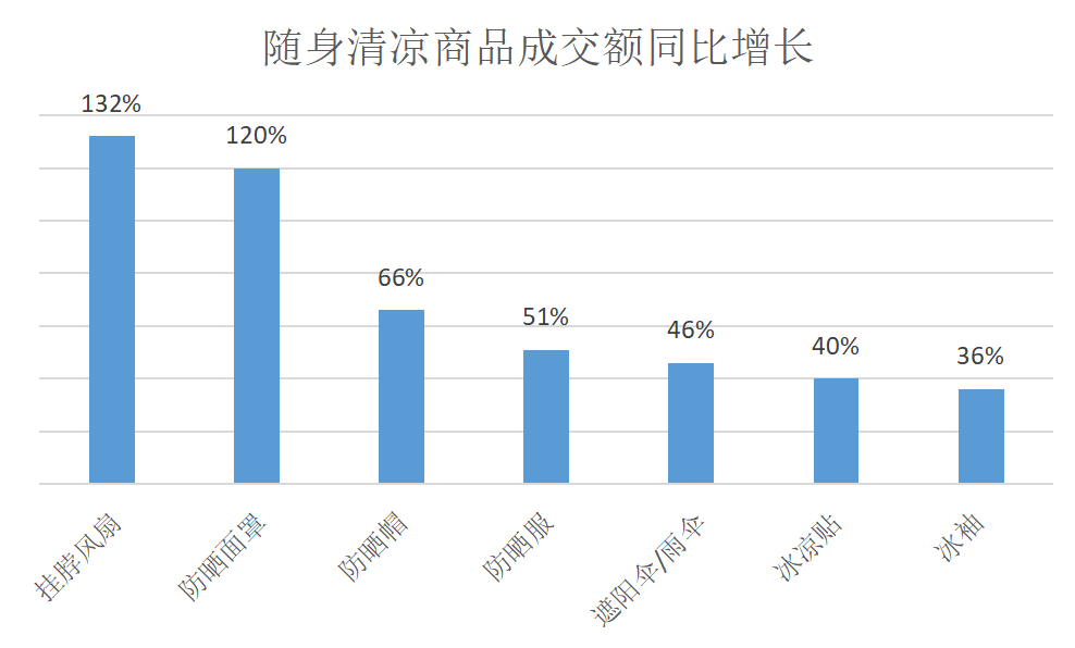 *挂脖风扇、防晒服等随身清凉用品消费增长超1倍,防晒面罩热销;