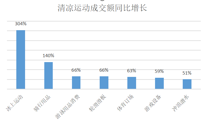 *冰上运动、游泳等清凉运动成交额同比增长136%,比基尼泳装热销,显瘦、优雅、性感等成为热销泳装的描述关键词,为炎炎夏日增添一道美丽的风景线。