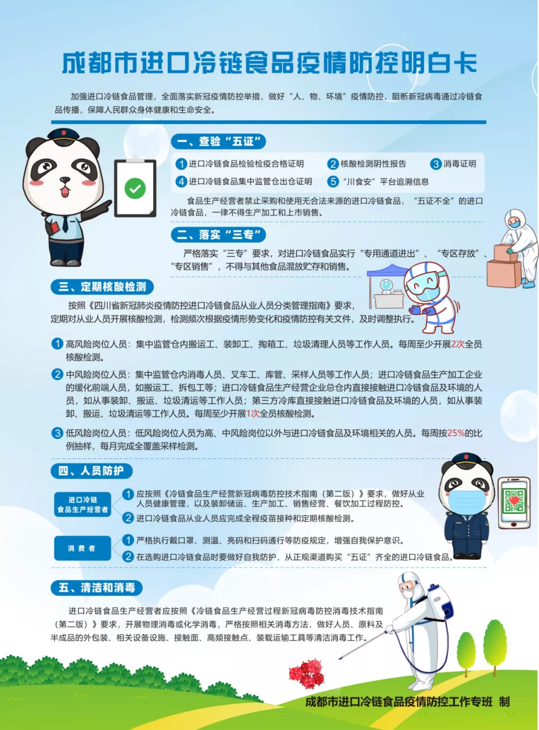 为扎牢进口冷链食品监管疫情防线,成都市邛崃市市场监管局全面加强管控措施,从严从细,压实“四方责任”,落实“四早要求”。