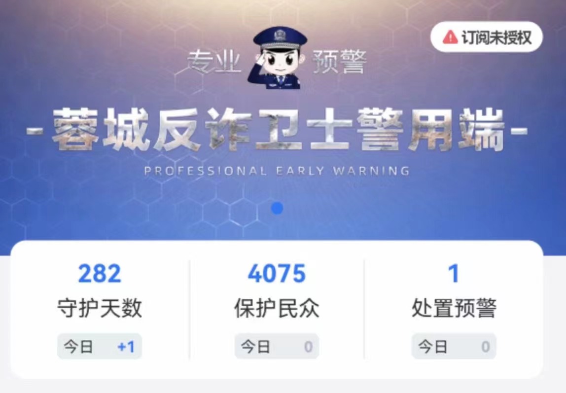 在前期实现“蓉城反诈卫士”小程序7天突破百万实名注册量的基础上,武侯公安全警上下持续深入辖区宣传推广“国家反诈中心”APP和“蓉城反诈卫士”小程序,现已实现辖区常住人口注册数106万余人,覆盖率达81.56%!推广至今,全区共计预警435999条,其中高危预警5368条,中危预警7993条,低危预警422638条,避免群众损失数千万元。
