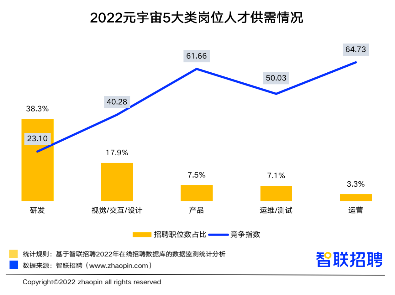 带着这些对新生事物的探究,近日,看度记者了解到智联招聘发布《2022元宇宙行业人才发展报告》,深入浅出解析元宇宙领域职场现状,为更多有意向从事元宇宙行业的人才提供参考。