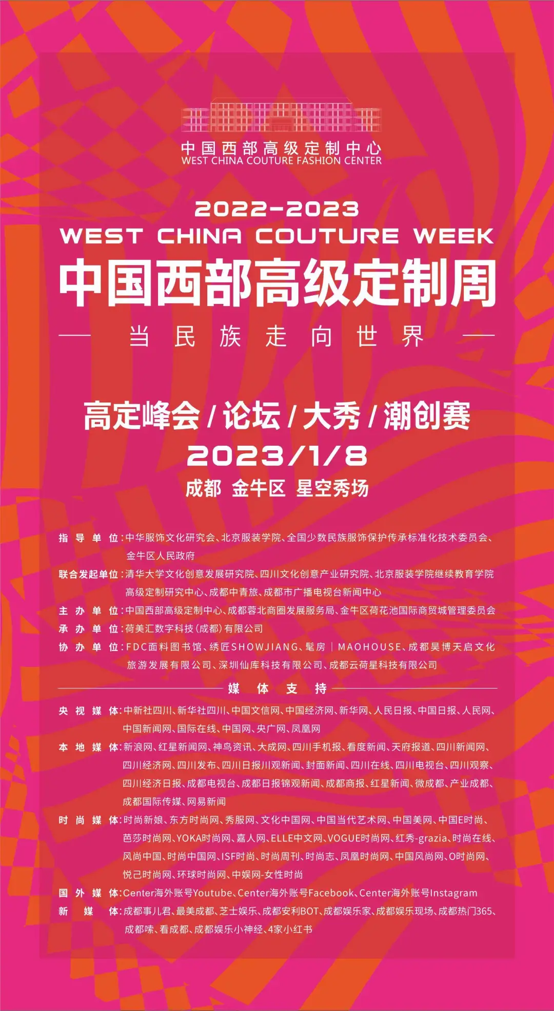 中国西部高定周融合了2022(第五届)中国高级定制产业发展峰会暨成都国际高定论坛、中国民族文化潮服(饰)大赛、高定品牌发布秀几大环节。