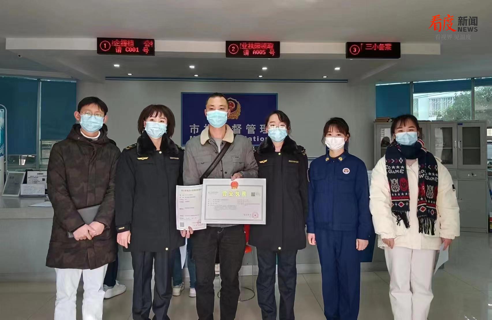 “太好了!一次性就办完了所有事,不用多个部门往返跑,真是太方便了!”在新年前夕正式开启新事业的杜先生满心欢喜。1月17日,杜先生在温江区市场监管局、区行政审批局、区综合执法局、区消防救援大队工作人员协同服务指导下,2小时内成功领取到营业执照和食品经营、招牌设置等许可证,这是全省统筹实施“开饭店一件事一次办”联办工作以来发出的首份证照。
