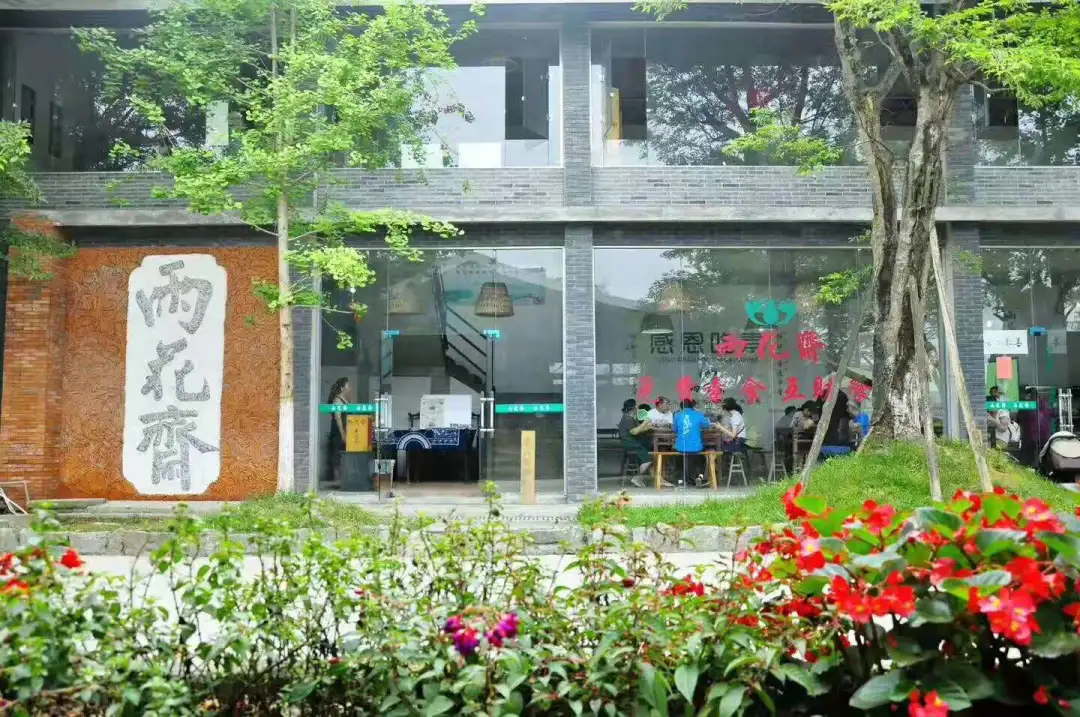 雨花斋是一家全国联根的免费素食餐厅,扎根幸福公社五载有余。这里的食材都来自于爱心捐赠,村民和社员会将自家蔬菜、米、面、粮油捐赠过来。雨花斋不设门槛,不分贵贱,以一颗利他之心,无偿为所有人提供免费素食。