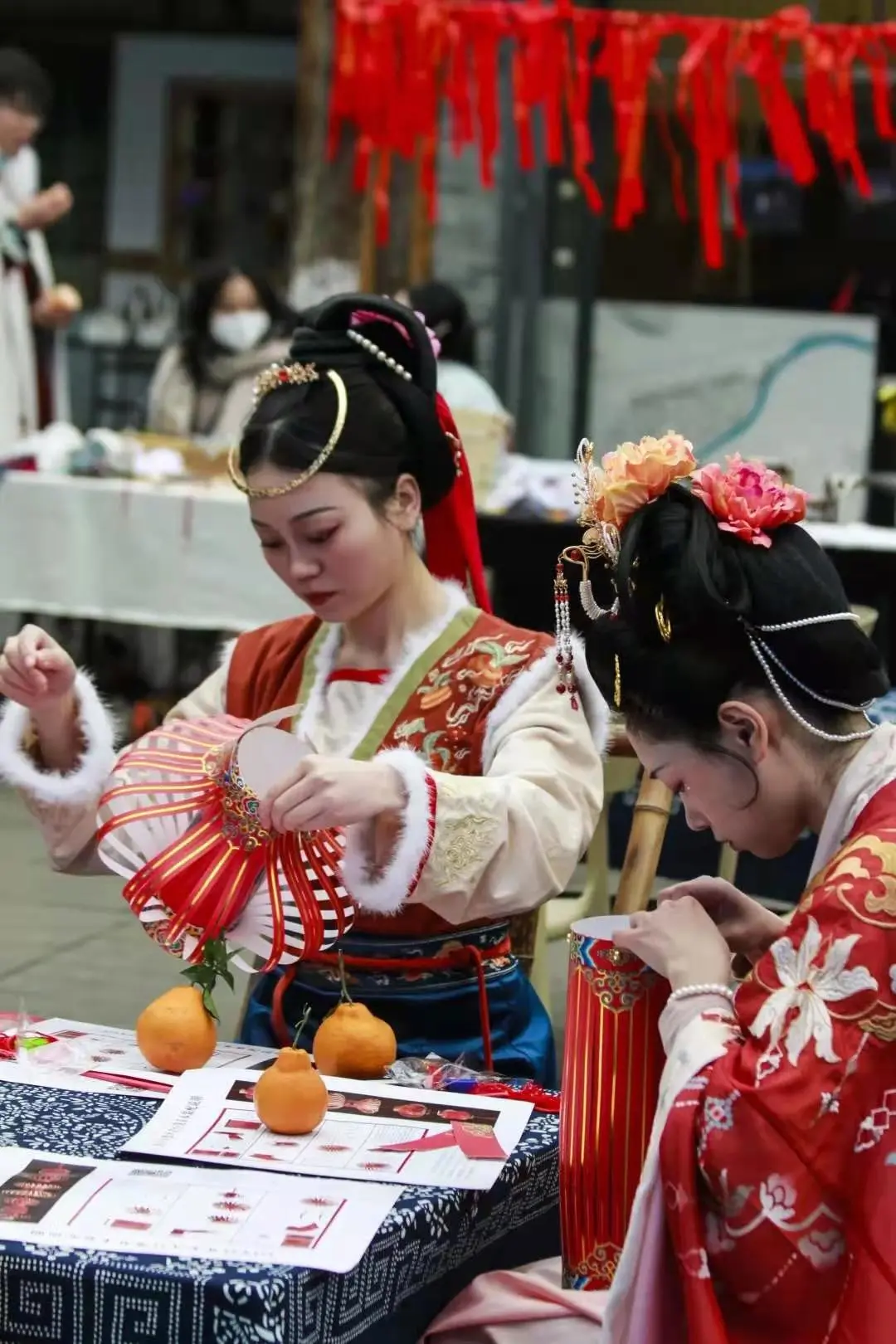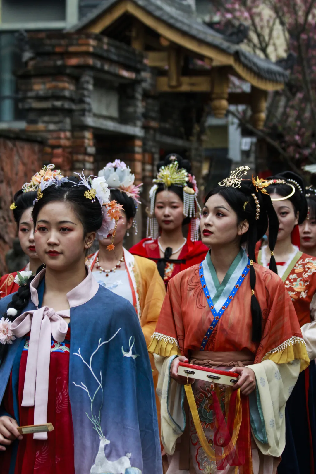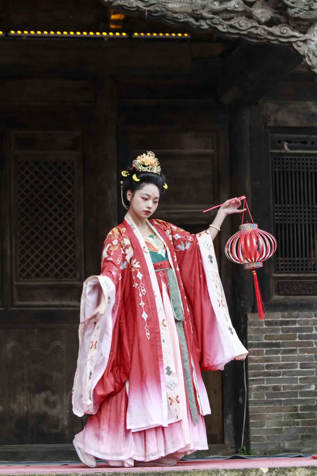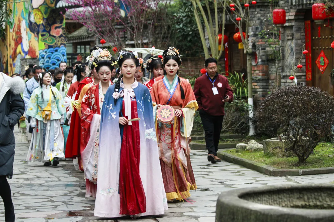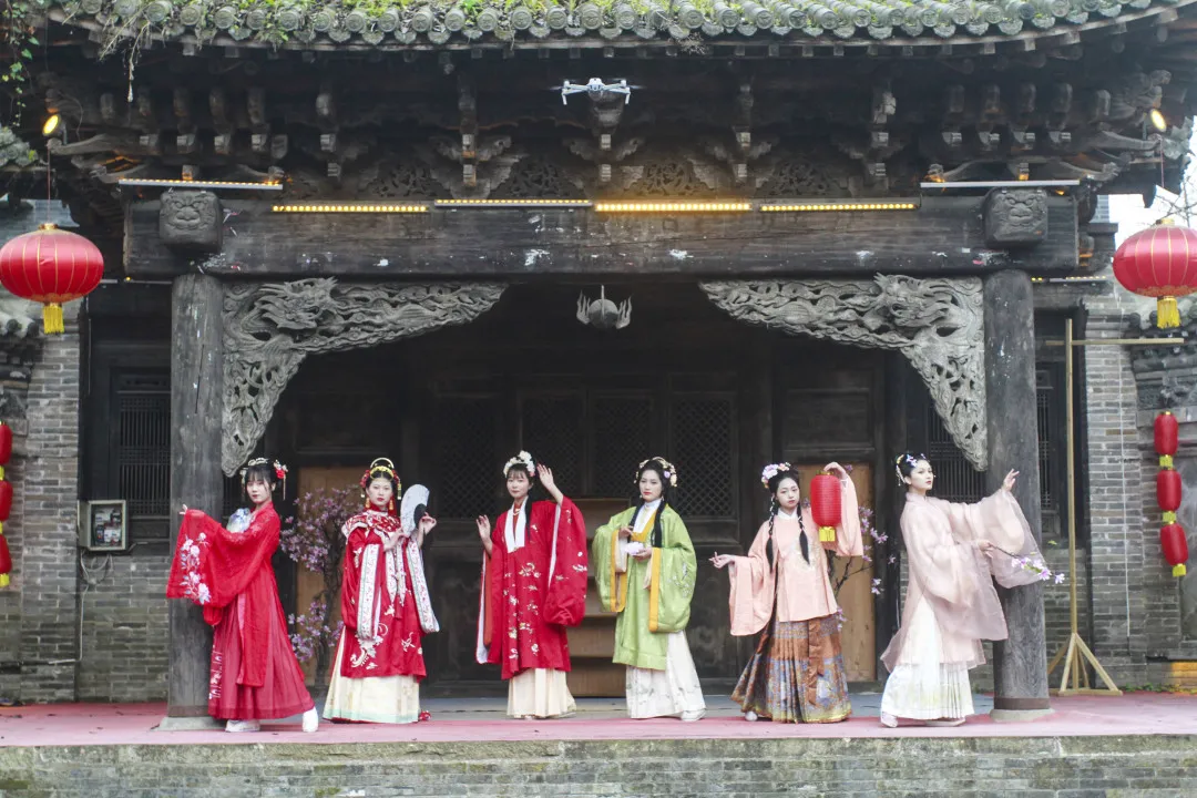 汉服爱好者们身着汉服,提灯巡游在幸福公社的街巷之中,向游客展示各个朝代独有的汉服特征,让越来越多人了解中华传统服饰美。在幸福公社内形成了一道靓丽的风景线。