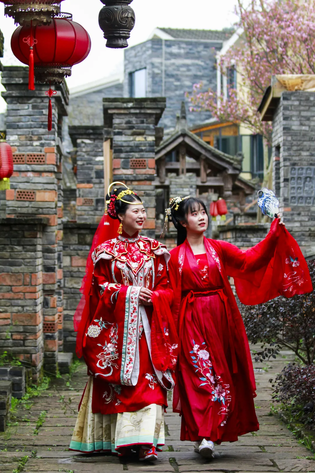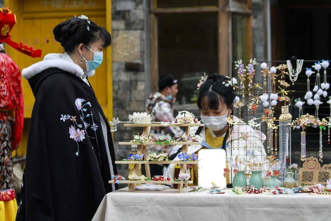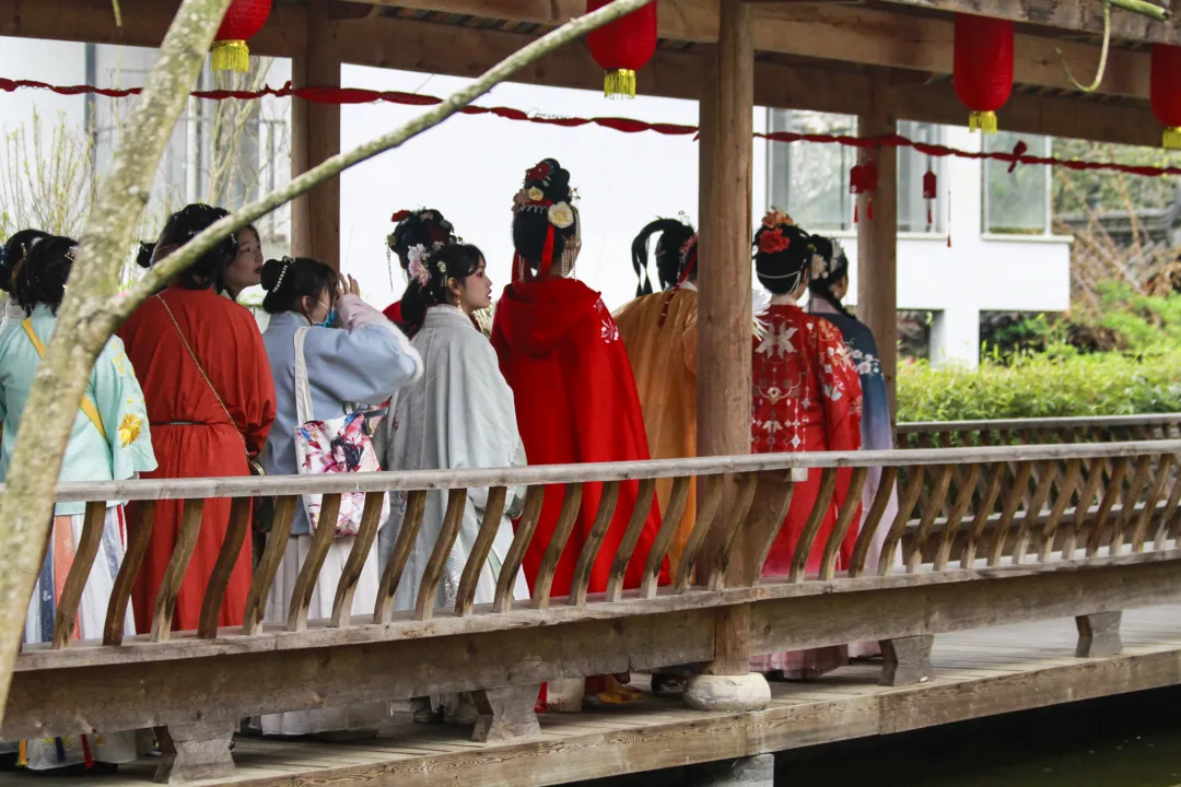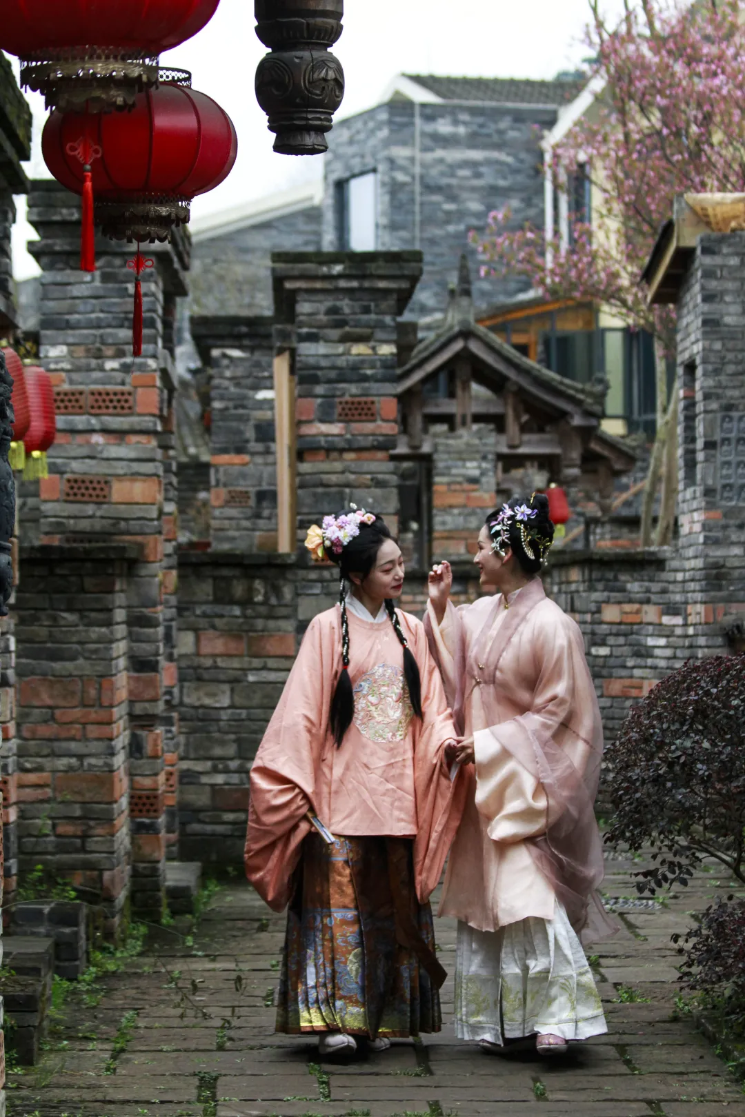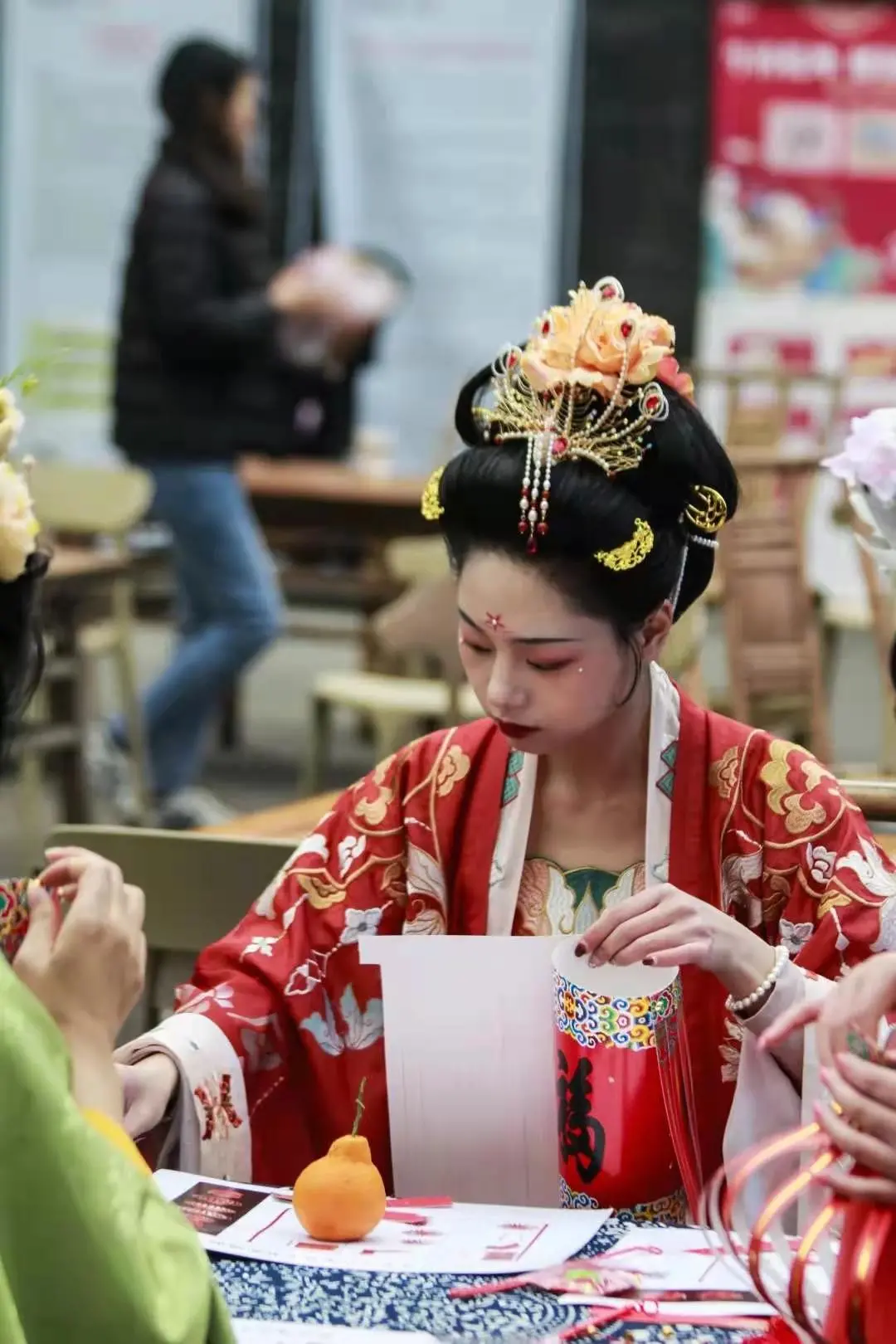 汉服爱好者们身着汉服,提灯巡游在幸福公社的街巷之中,向游客展示各个朝代独有的汉服特征,让越来越多人了解中华传统服饰美。在幸福公社内形成了一道靓丽的风景线。