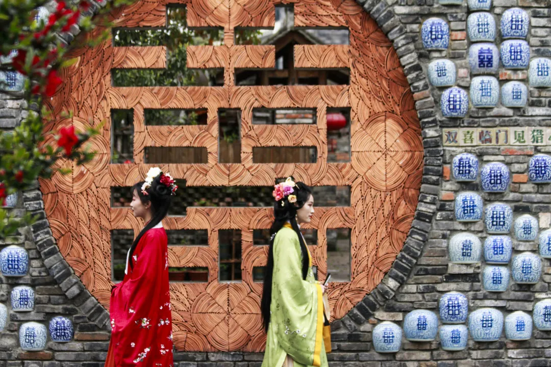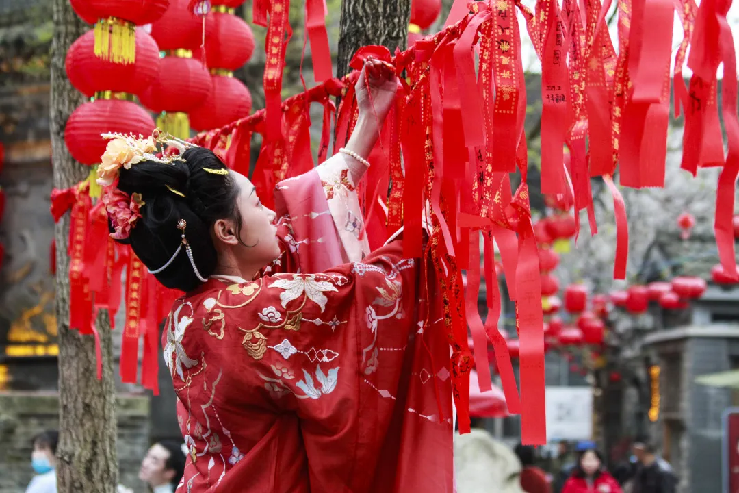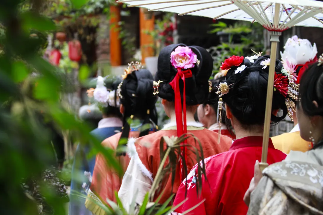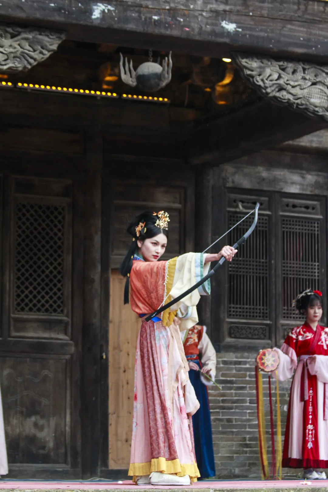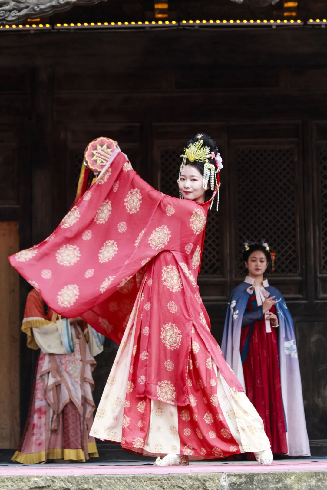 汉服爱好者们身着汉服,提灯巡游在幸福公社的街巷之中,向游客展示各个朝代独有的汉服特征,让越来越多人了解中华传统服饰美。在幸福公社内形成了一道靓丽的风景线。