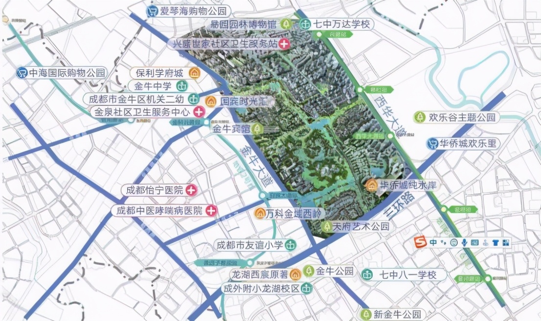根据规划,天府艺术公园片区规划面积约4.18平方公里,它以西三环为起点,以金牛大道和西华大道为两边,西向延伸。