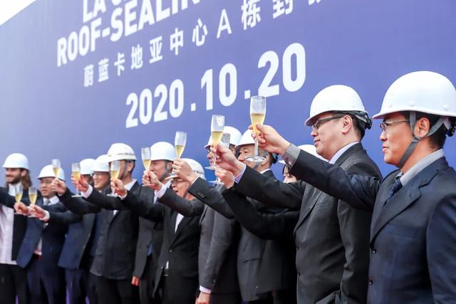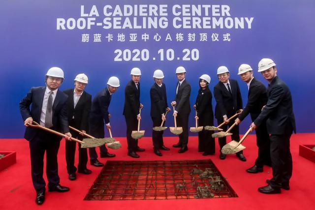 蔚蓝卡地亚集团高层和项目施工总承包——中国建筑行业龙头企业【上海建工集团】、幕墙承建方——中国幕墙领军企业【江河幕墙】集团领导共同出席封顶仪式,CEO公馆的六大合作品牌Miele、Technogym等代表亦受邀出席,共同见证这一盛事。