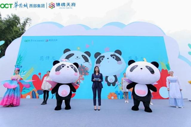 洛带华侨城总经理助理黄艳红对项目品牌进行了发布,生动诠释了以"FLOWER花卉、FARM农场、FAMILY家庭、FRIEND朋友、FUN趣味、FANTASY幻境",6个"F"为主题的视觉形象,并隆重推出了两只以熊猫为原型的IP形象,"花伴儿"和"花朵儿",它们将于明年6月在熊猫花乐园里正式与大家见面。