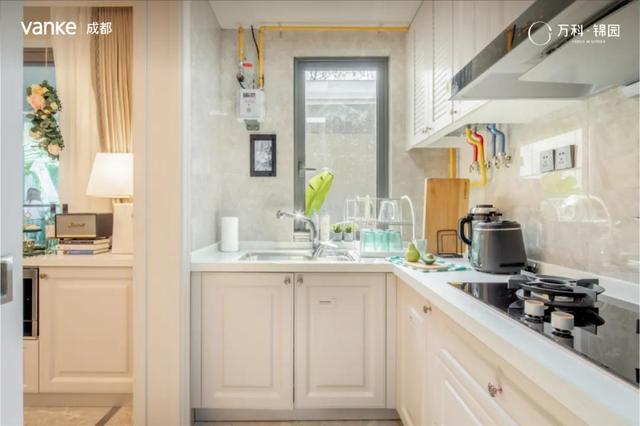 万科锦园切合日常生活所需,U型厨房设计,打造洗、切、炒完美流畅动线,更大化提升烹饪炒作空间,让做饭的时光更快捷,洗碗更便捷,厨房更整洁。