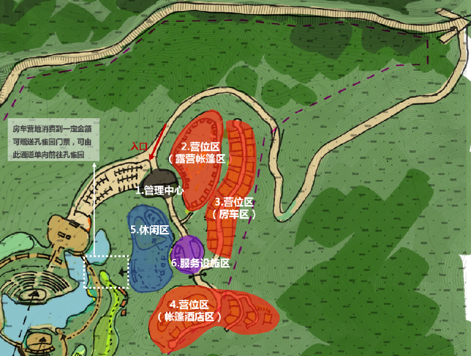 附属设备1.停车场(与营地共用):40个小车车位(或25个大巴车车位)2.游客接待中心