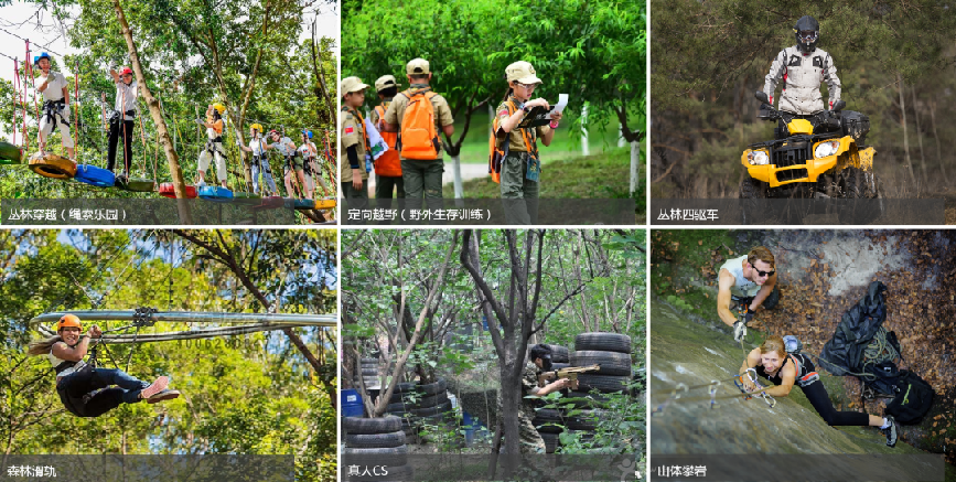 同期打造高低空探险、 高低空网阵、攻防箭、泡泡足球、 真人CS野战、趣味拓展、攀岩、 热气球、集装箱酒吧、平衡车等丰富多彩的游玩项目。