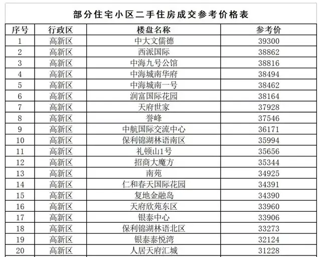 高新区二手房数据再次巩固了“南富”的含义:5月28日,成都发布了首批次住宅小区二手房成交参考价格,价格位列前排的项目多数被高新区包揽。